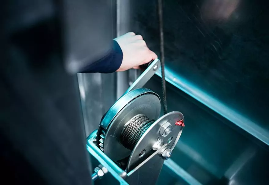 Une fois positionné par un chariot élévateur grâce à ses emplacements de fourches, le mât se déploie à la manivelle, et arrive à sa pleine hauteur de 6 mètres en moins de 30 secondes. Ses 4 pieds escamotables réglables le rendent parfaitement stable. Le mât est également grutable en utilisant les anses prévues à cet effet.